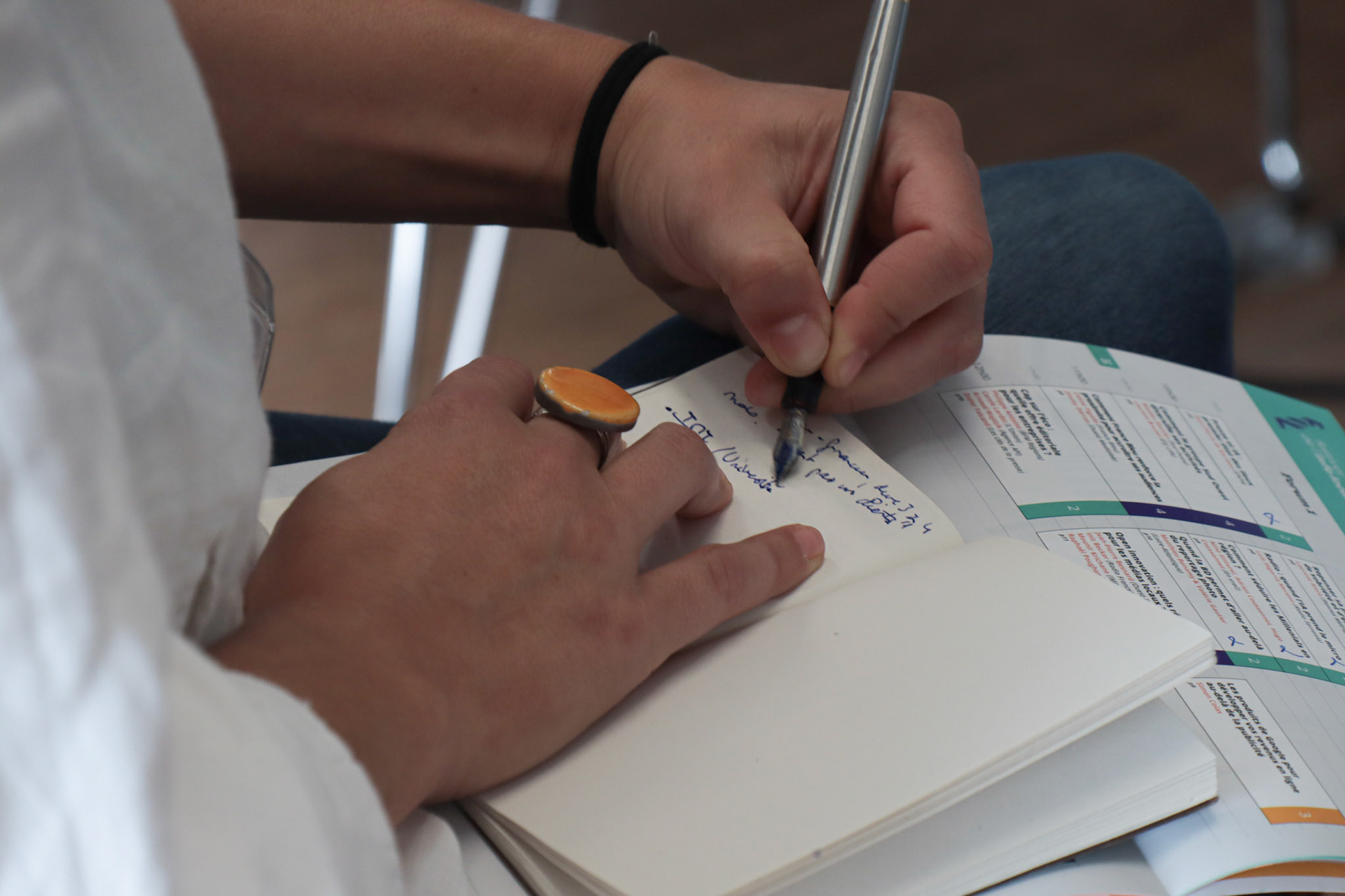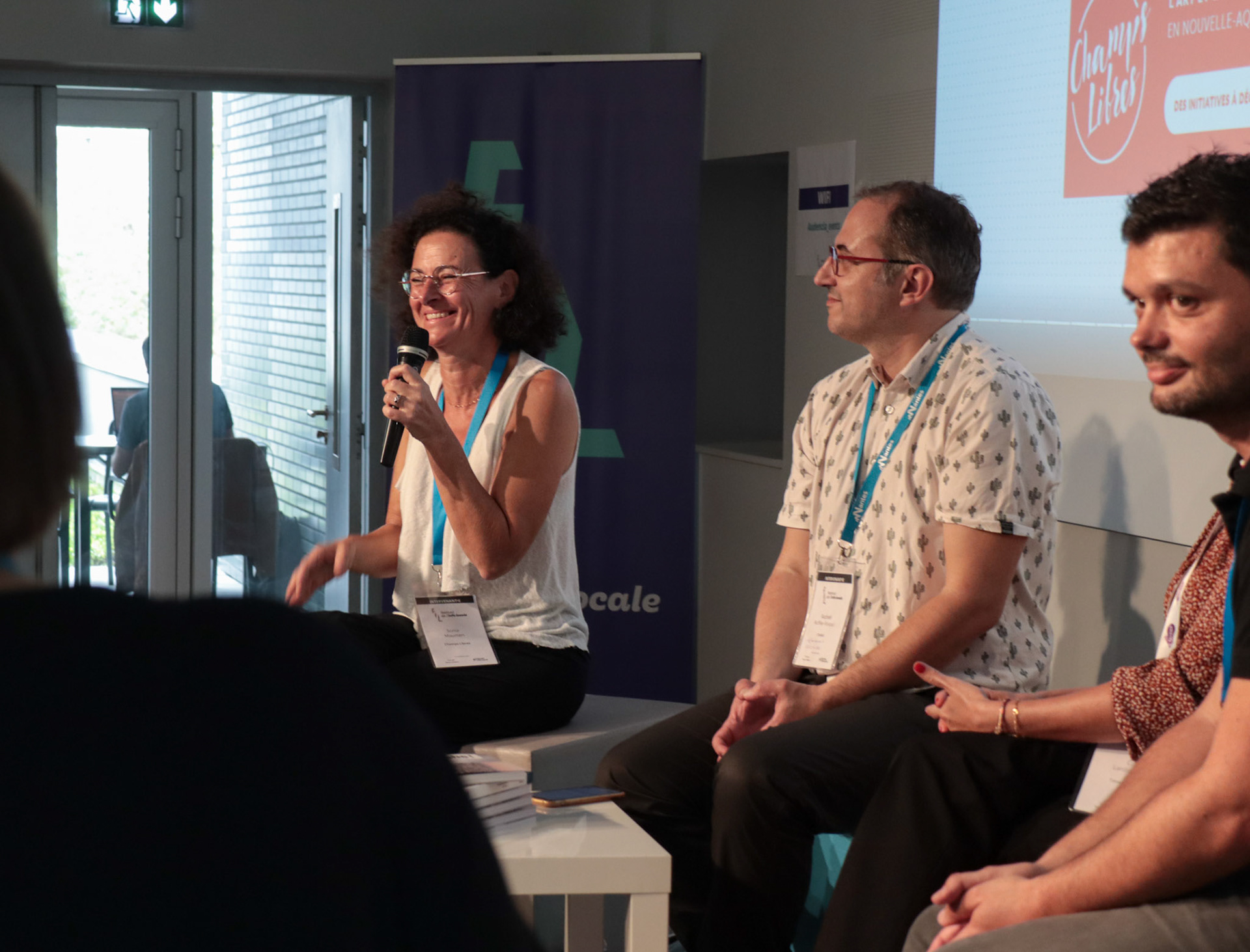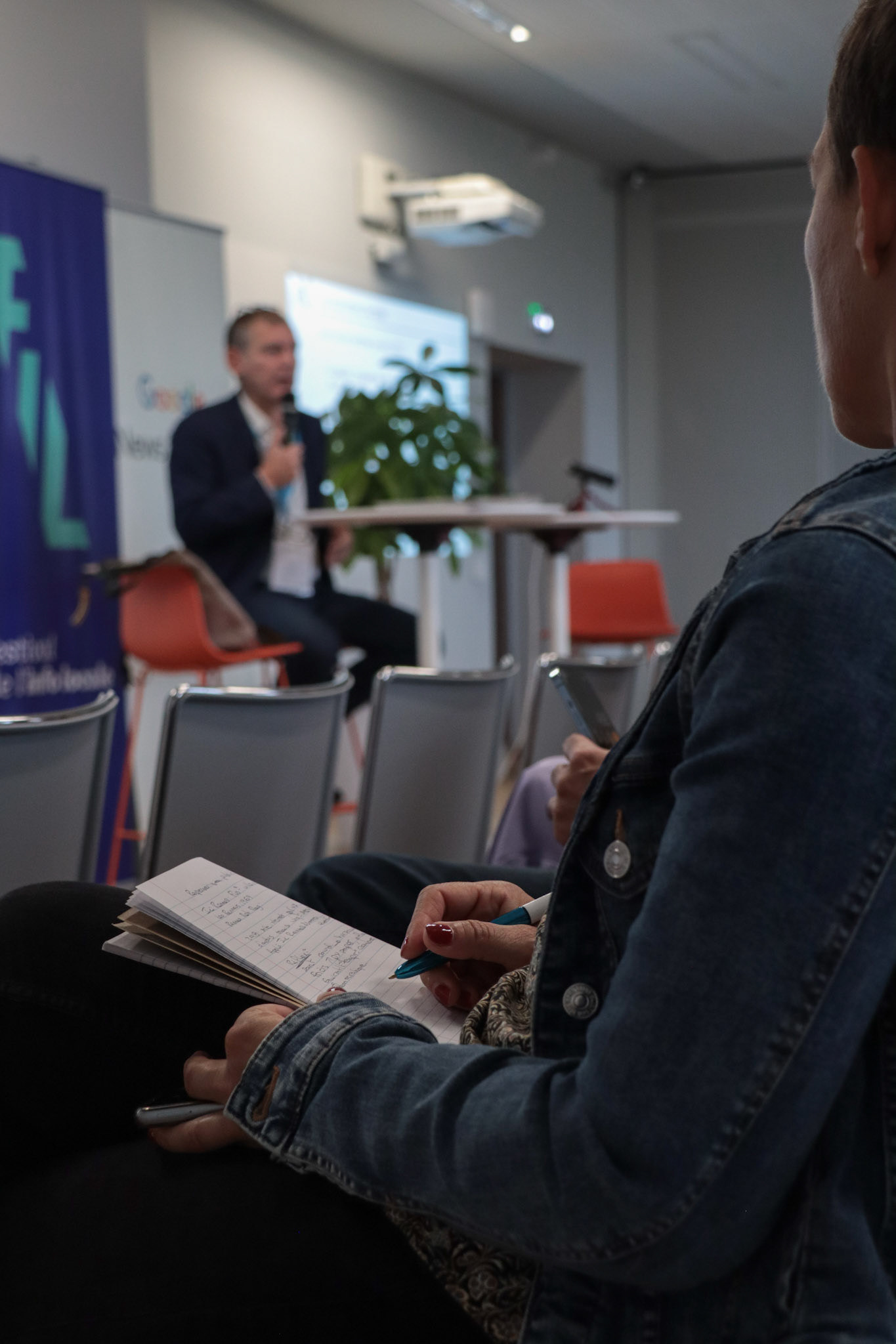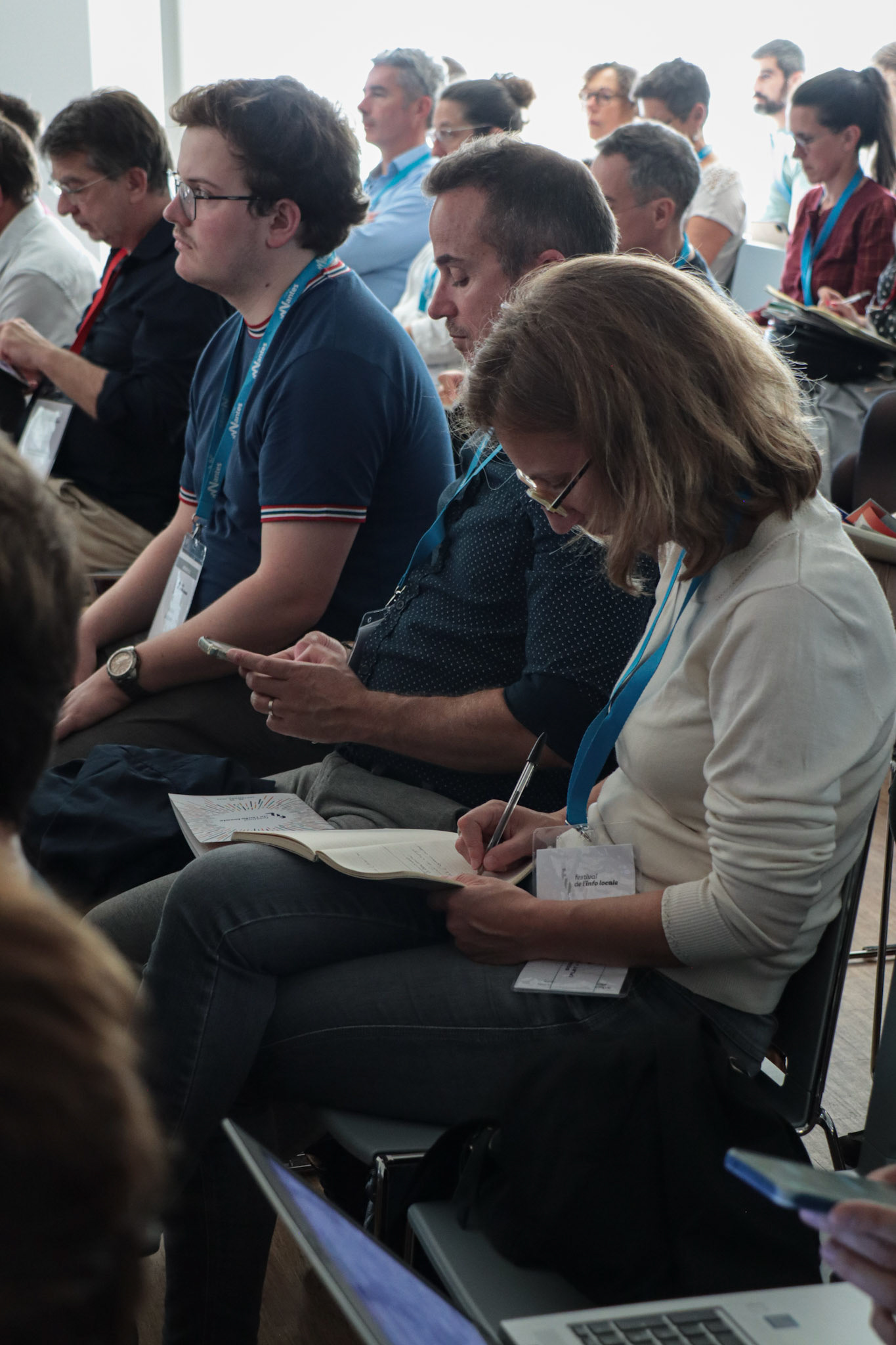 Les rédacteurs, dans le fond des différentes salles sont bénévoles. Plusieurs conférences se déroulent en même temps. Pas de panique, à la sortie du FIL, les participants ont des résumés de chaque conférence.